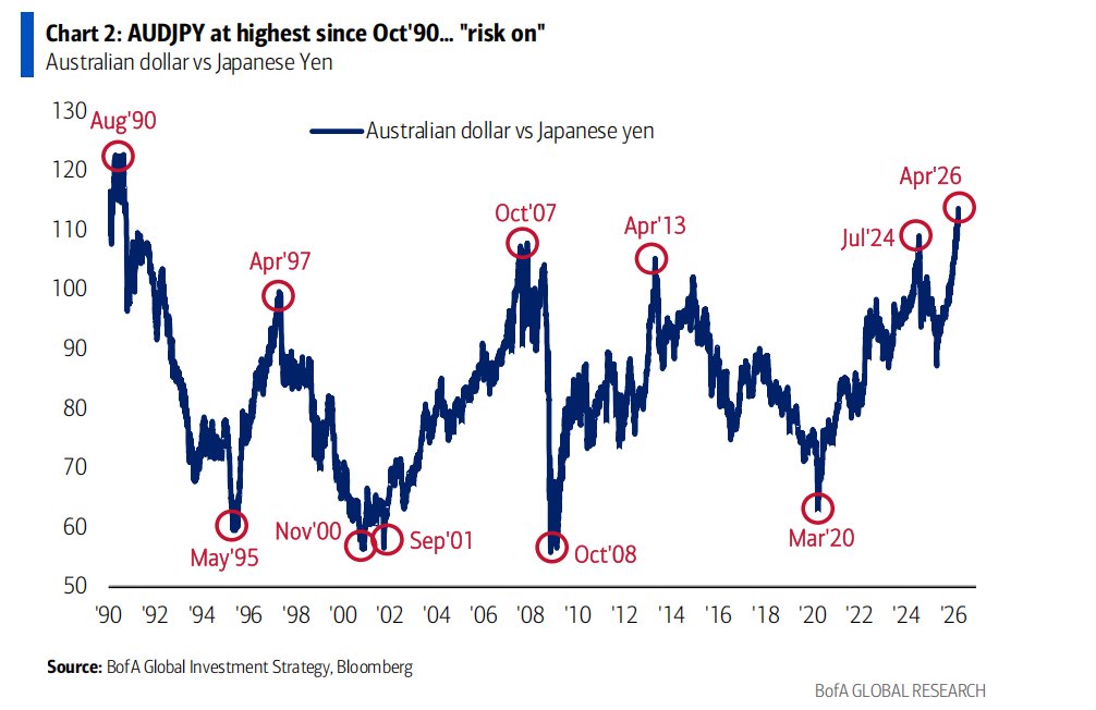 • 风险偏好指标(澳元兑日元)创下1990年以来新高!