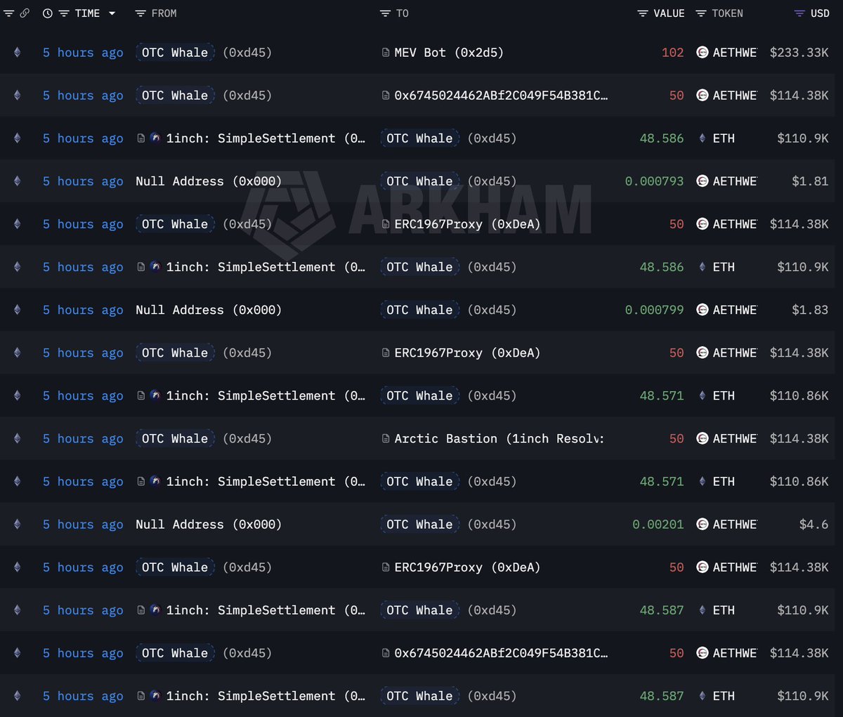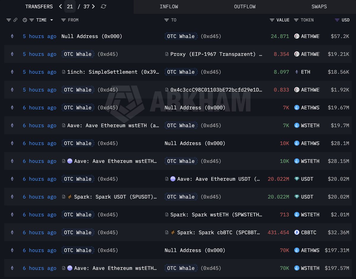 之前购买了163,405 $ETH($440M)和4,000 $cbBTC($296M)的场外鲸鱼已经从#Aave提取了98,032 $wstETH($272M)和3,000 $cbBTC($221.6M)。
