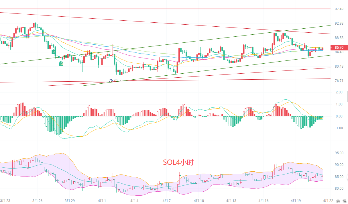 4.21索拉纳SOL短期方向不明,布林带收窄后的突破机会在哪里?最新行情分析及操作建议
