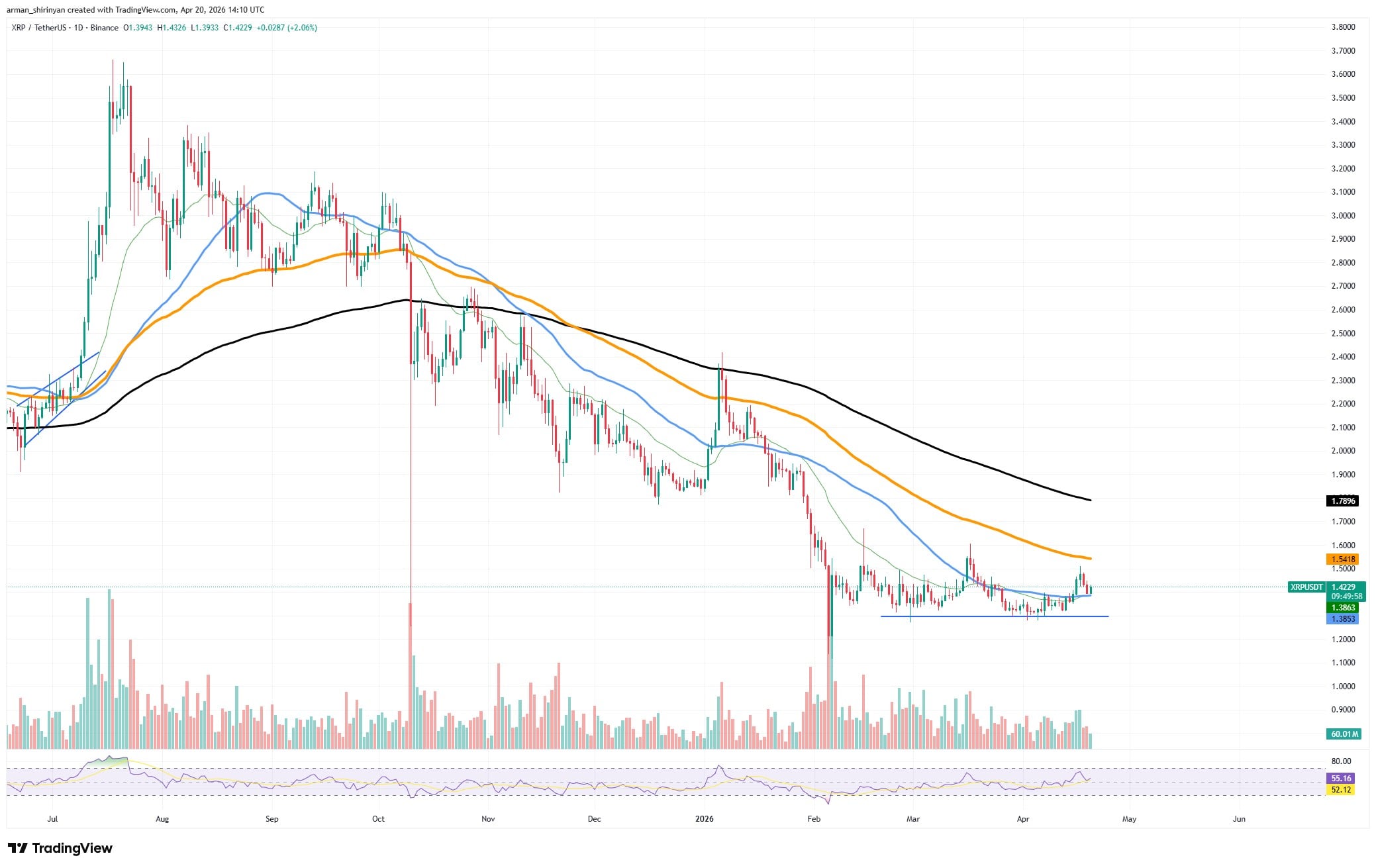 XRP/USDT 图表来自TradingView