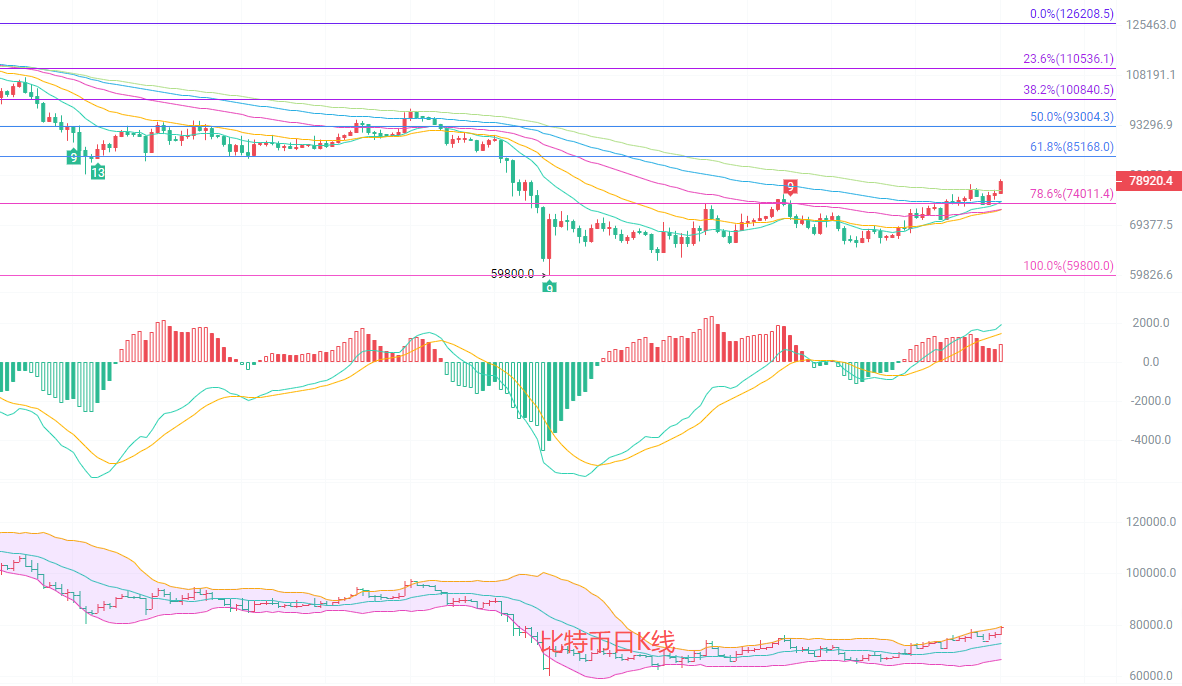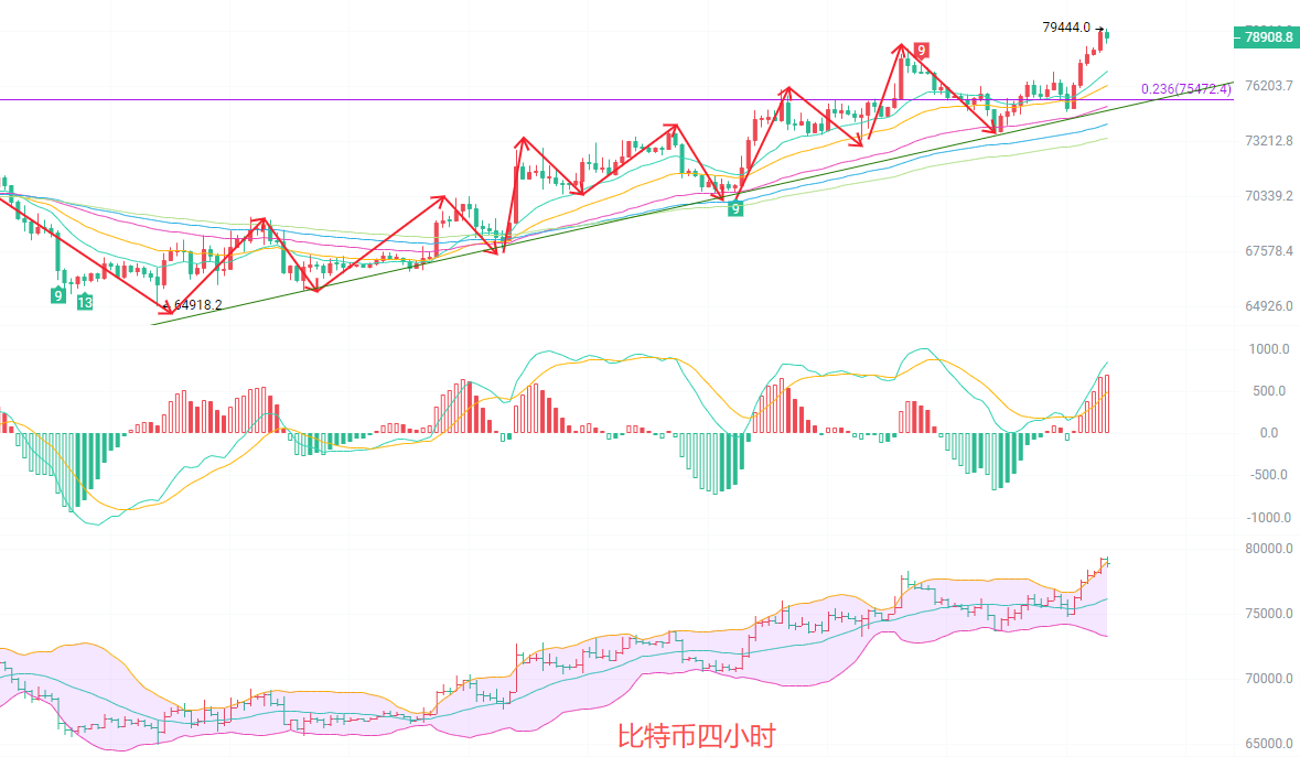 币圈院士:4.23比特BTC冲顶79000!日K趋势已定,4小时多空机会别错过最新行情分析及操作建议