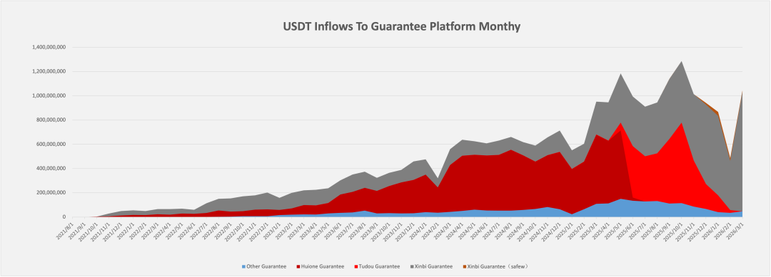图 1:担保平台月度 USDT 流入趋势图