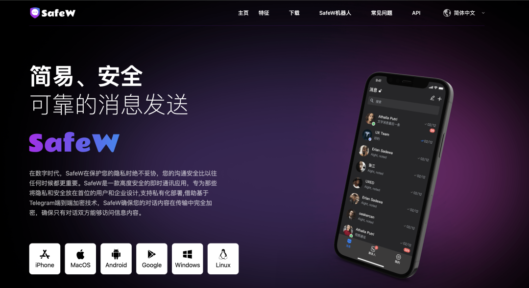 什么是 SafeW?SafeW 是新币推出的高度安全即时通讯应用,支持全平台(iOS, Android, Windows, Linux)。表面上它是一款类 Telegram 的加密通讯工具,但其背后承载的是新币规避风险的野心。