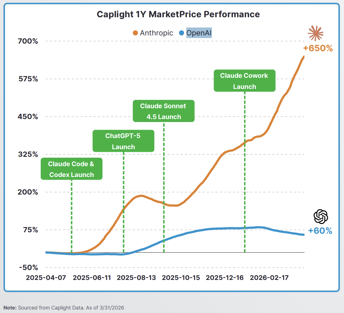 这种良好交易(和良好的公关)的组合增加了对Anthropic股票的兴趣。Caplight跟踪私人市场的股份活动,报告称,过去12个月中,Anthropic的关注度激增了650%以上。