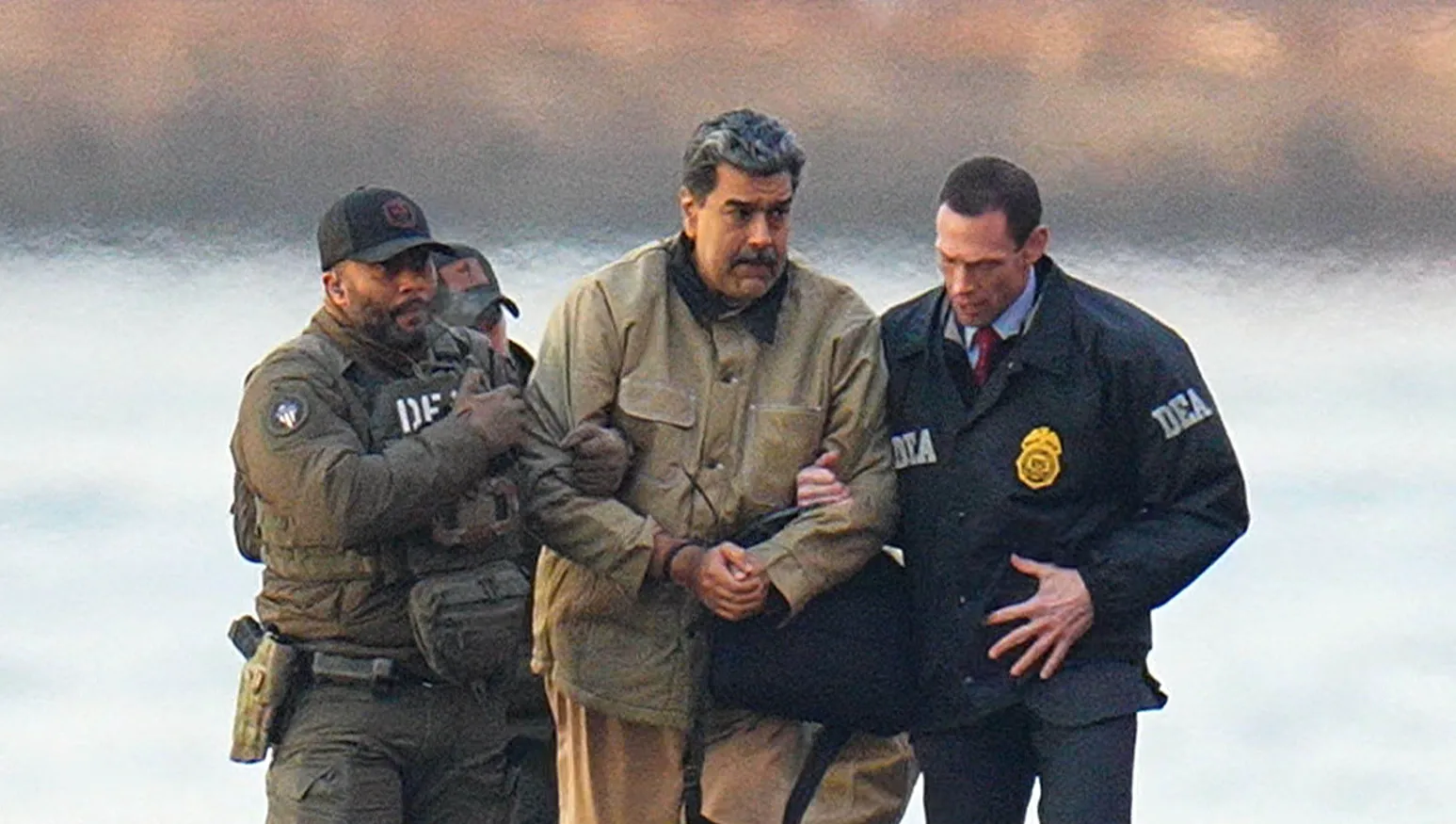 就在此刻,画面定格:马杜罗被 DEA 探员押解,双手被铐,脸上写满震惊。