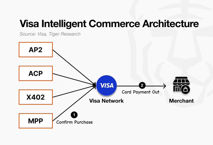 原因是 Agentic Commerce 并非全新的结构。在现有系统中,用户、卡发行人和商户各自只需要一次更新。这与其说是技术优越性,不如说是市场接入的速度。