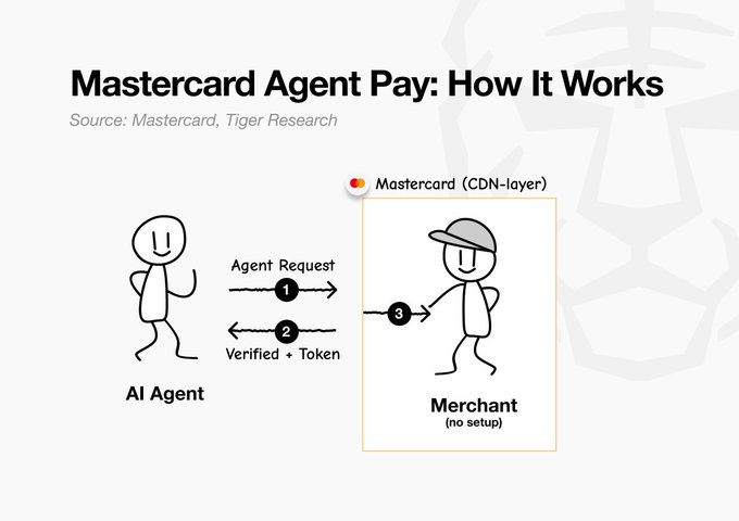 @Mastercard 与 Visa 玩着同样的游戏。它是一家即使在 Agent 时代也要保持卡网络地位的公司。Mastercard 选择的策略是将覆盖全球 210 多个国家的现有支付网络向 Agent 开放,但构建架构让商户能够轻松接入其系统。