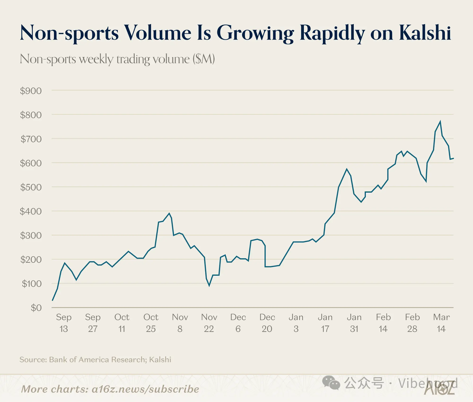 与此同时,包括 a16z 在内的机构开始持续关注这一赛道。这并不是因为预测市场“变得更热”,而是因为它开始具备基础设施的特征。预测市场正在从边缘产品,变成一种“为不确定性定价”的基础设施。
