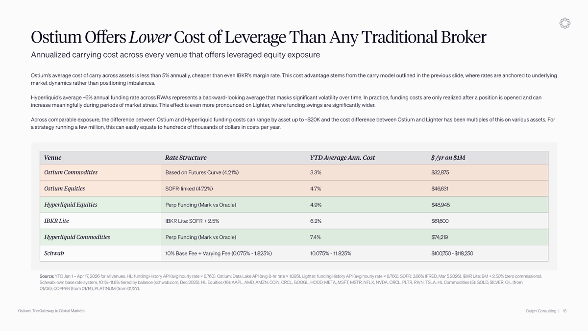 Ostium 提供比任何传统经纪商更低的杠杆成本。