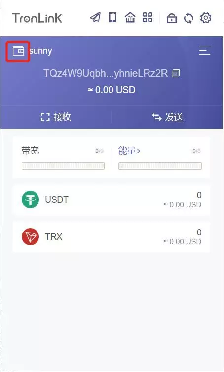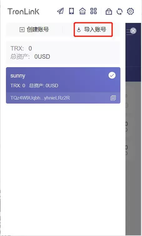 7. 如果还想导入更多钱包账户,点击钱包图标,继续导入即可。