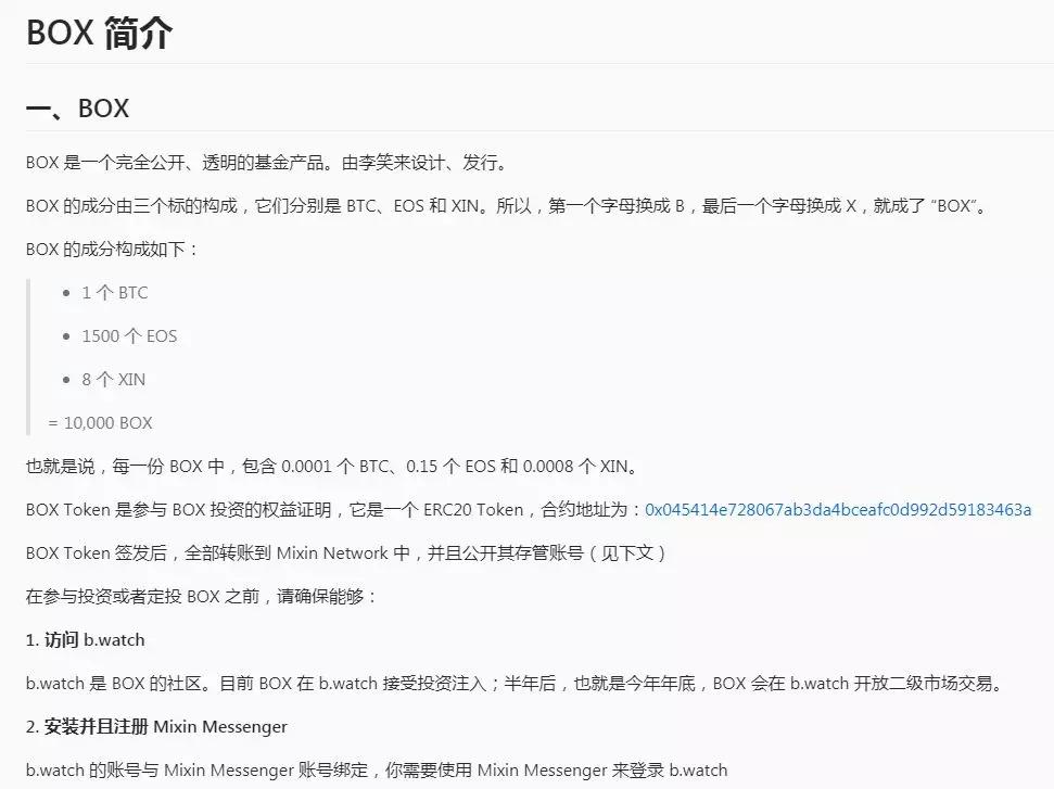 李笑来发行的BOX,就是参照传统金融的基金模式,将值得投资的产品按照比例捆绑在一起。