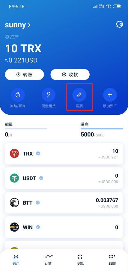 1. 打开波宝钱包APP,在资产首页点击“投票”。