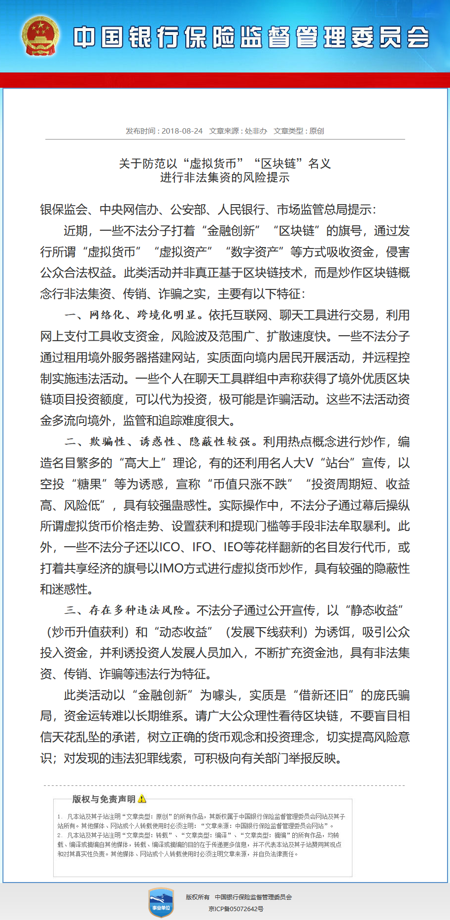 8月24日,五部委联合发文,要治理以“虚拟货币““区块链”为名义进行非法集资,诈骗的项目,公安部首次出现。