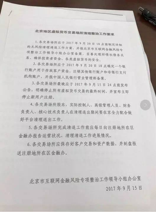 9月15日,网传北京市互联网金融风险专项整治工作领导小组办公室《北京地区虚拟货币交易场所清理整治工作要求》发布,要求交易所于9月30日暂停所有交易。比特币达到谷底,Bitfinex报价2980美元。