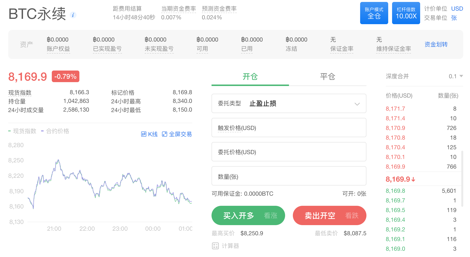 图表 1 OKEx合约交易的止盈止损委托交易界面