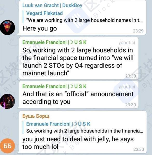 不过,随着项目的推进,一些社区爱好者开始动摇,有人在推特、电报质疑 Dusk 能否在今年底如期上线主网。对此,Dusk 官方人员暗示了主网的延迟,但表示仍有机会在第四季度发行STO。