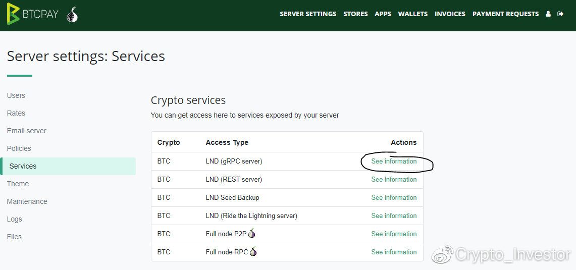 Step 6:在区块同步完之后,点击餐单栏里的Server Settings,然后选择如下图选择 LND(gRPC server)的See information。