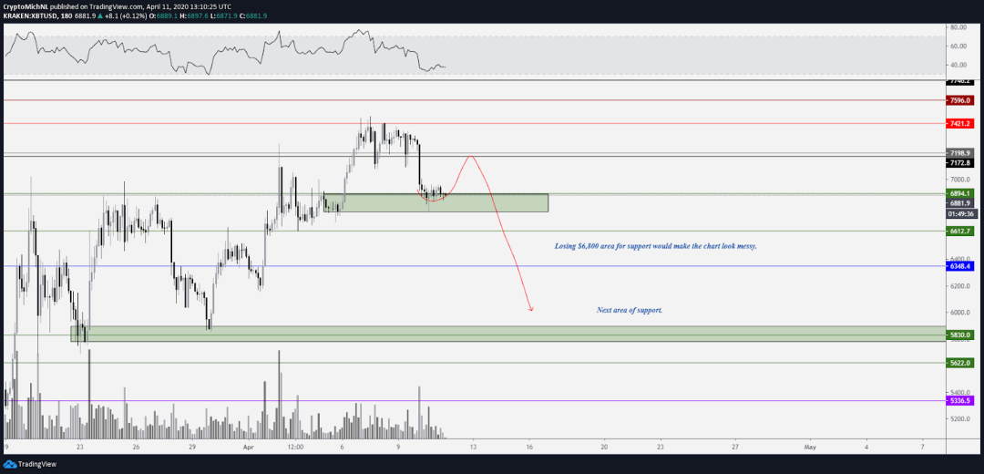 最近的下跌并没有引起高交易量,多头的最后支撑区域是6750-6800美元,如果跌破,将触发进一步的下跌;目前空军力量正在集结,根据庄家思维,可能会在进一步下跌之前,先上涨一波爆掉市场上的多数空单,之后拉升诱多入场,再转而向下。