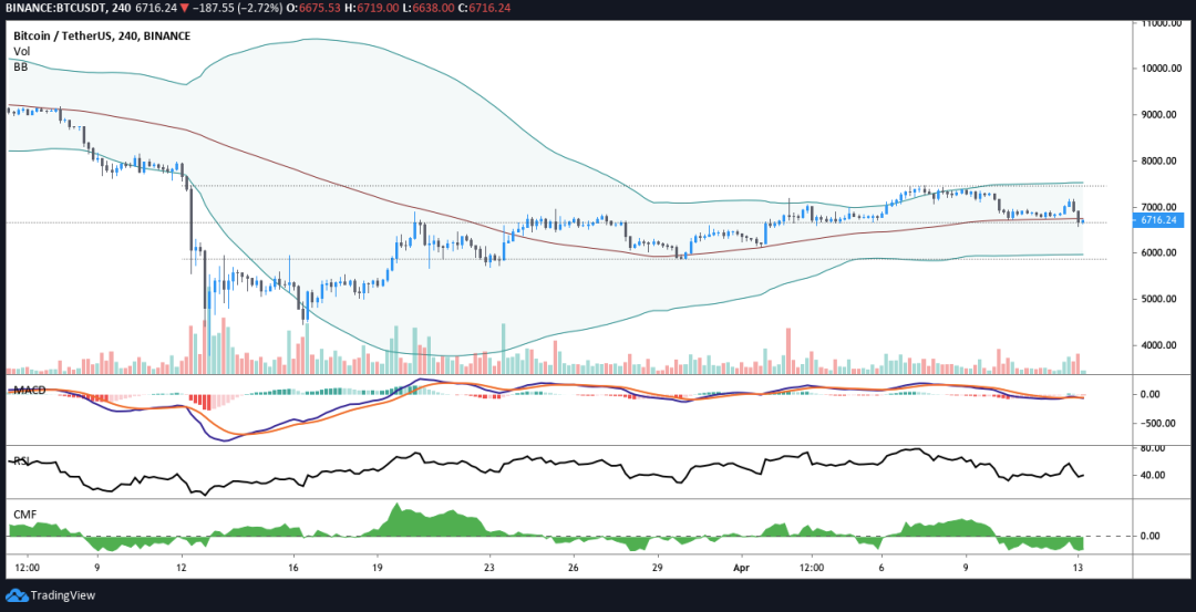 尽管周末的复活节令人兴奋,但巨大的抛售压力使比特币上涨至7000美元后暴跌了8%以上,从最高点7200美元跌至最低点6542美元位置。在撰写本文时,多军正努力将价格保持在6700美元以上。