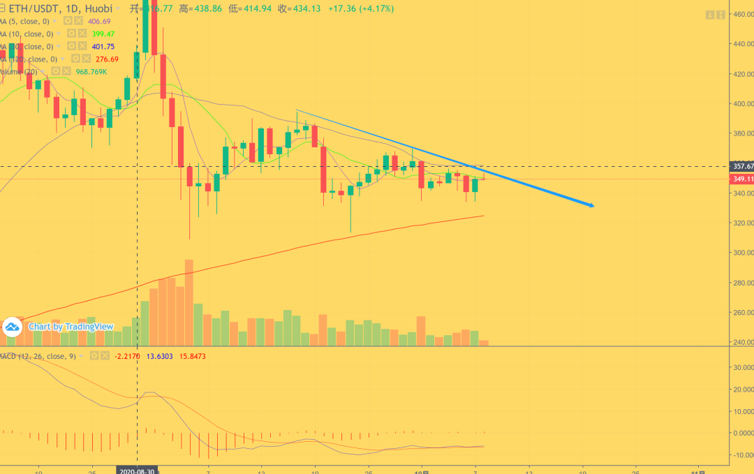 eth昨天提示会回抽5日线,且建议仓位重的5日线附近减点仓位,目前已经抵达目标位,操作上减点仓位等待后续低吸。技术面来看5、10日线趋向粘合,价格在这个位置反复,日线大下跌趋势压制还没走出来,逢高规避风险为主。压力位:358,支撑位:340。