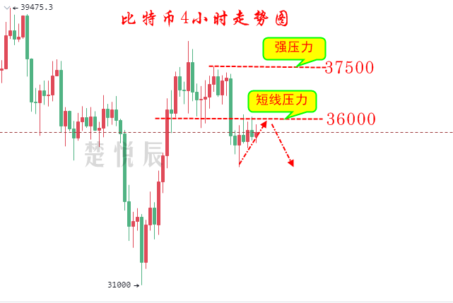1、比特币36000—36500附近空单,目标35000—34500,跌破34500下看33000,止损37500