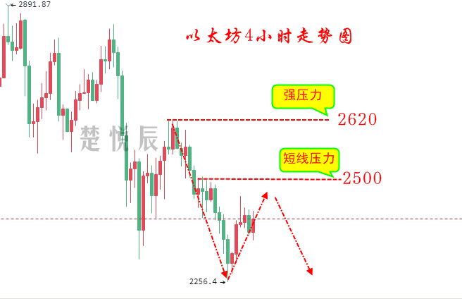 2、以太坊2450—2500附近空单,目标2300—2250,止损2550