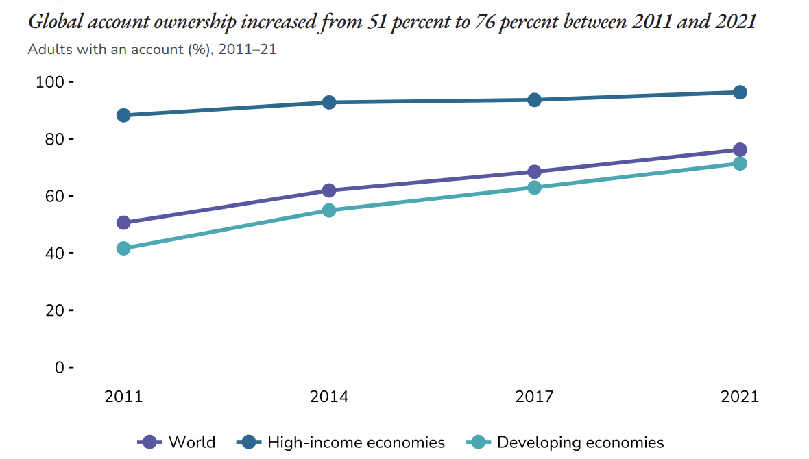 1.2 截止2021年,全球依然还有23.8%的成年人没有银行账户
