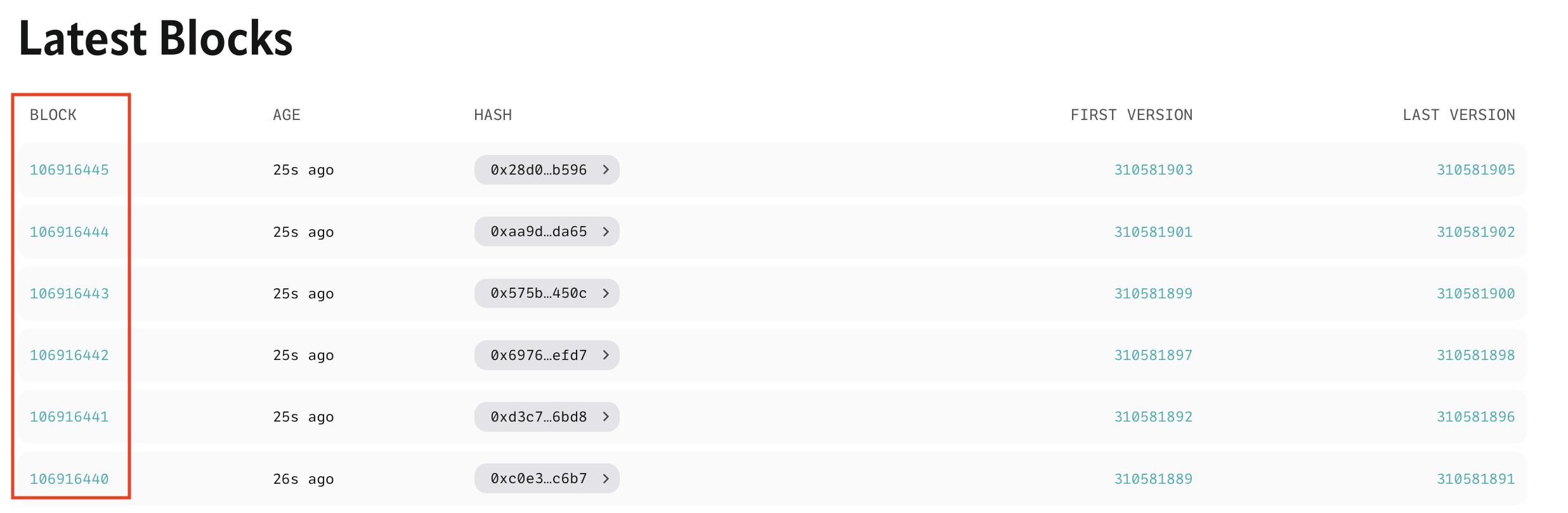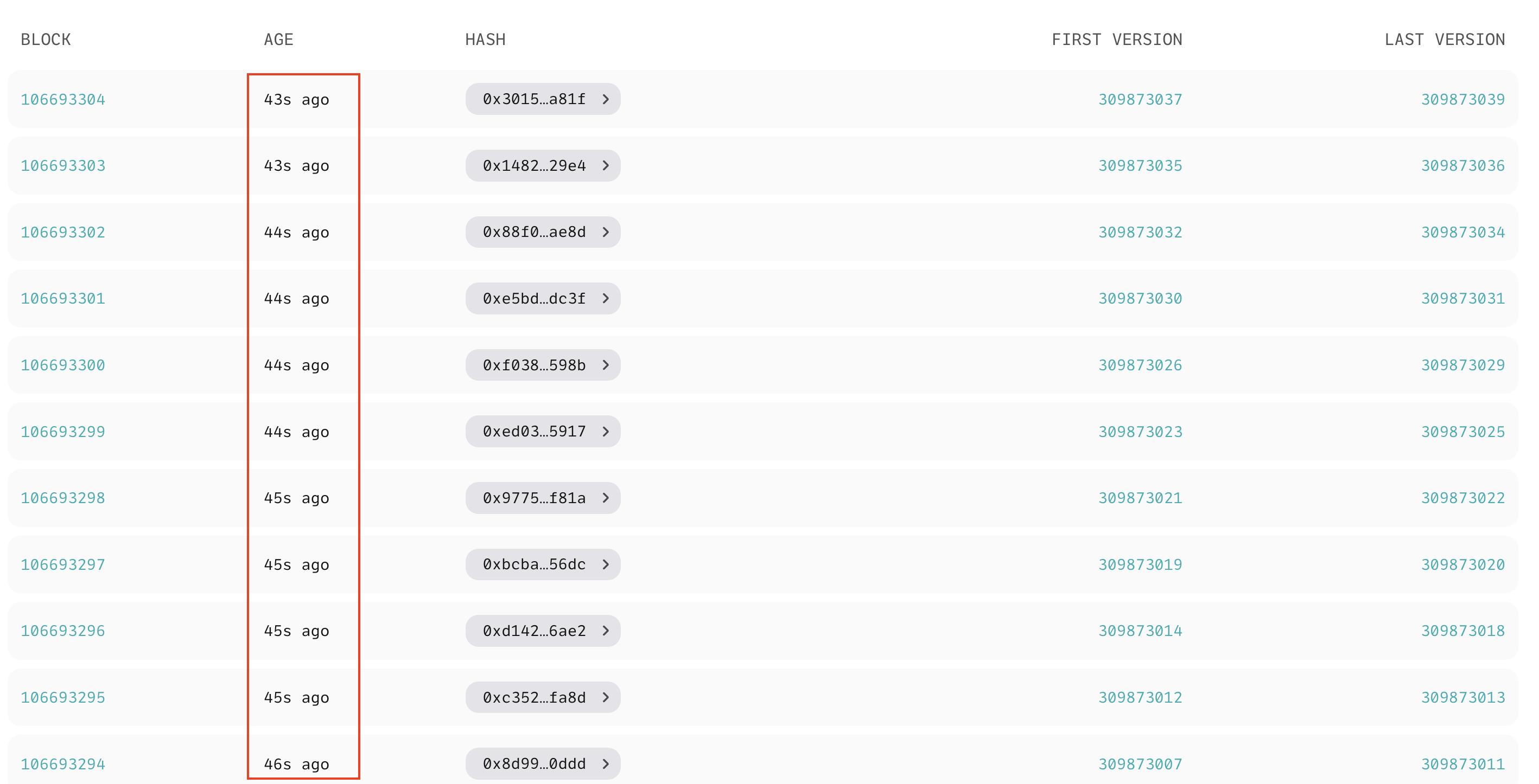 Aptos 低于1秒的实际出块时间 来源:Aptos Explorer