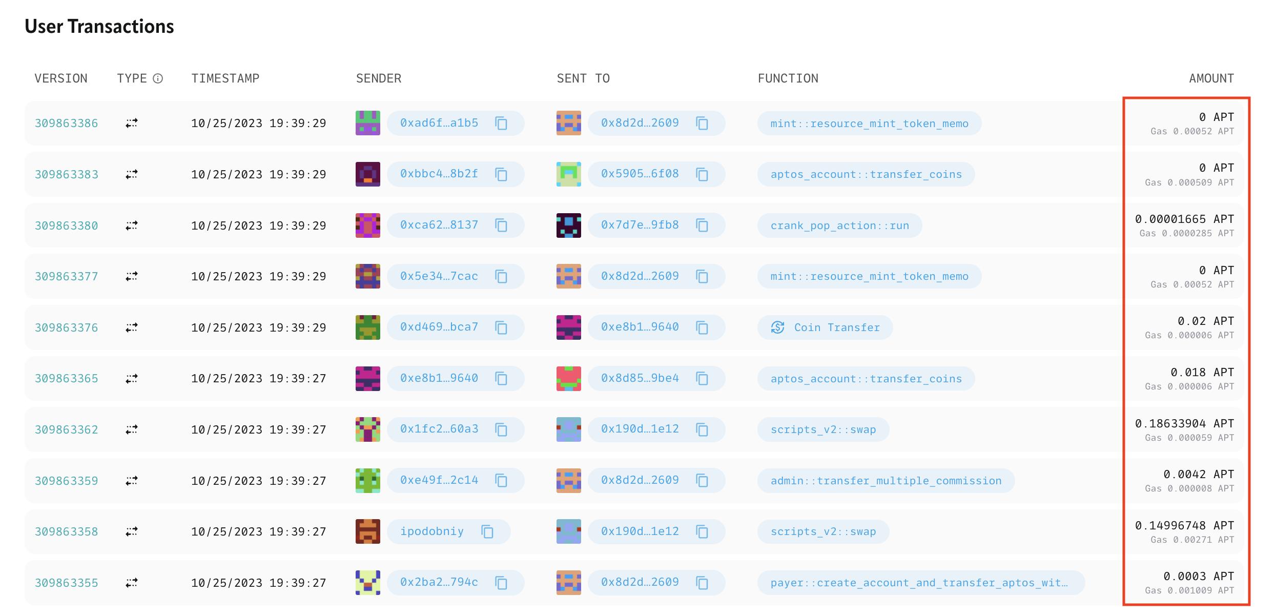 低于0.01美分/笔的交易费用 来源:Aptos Explorer