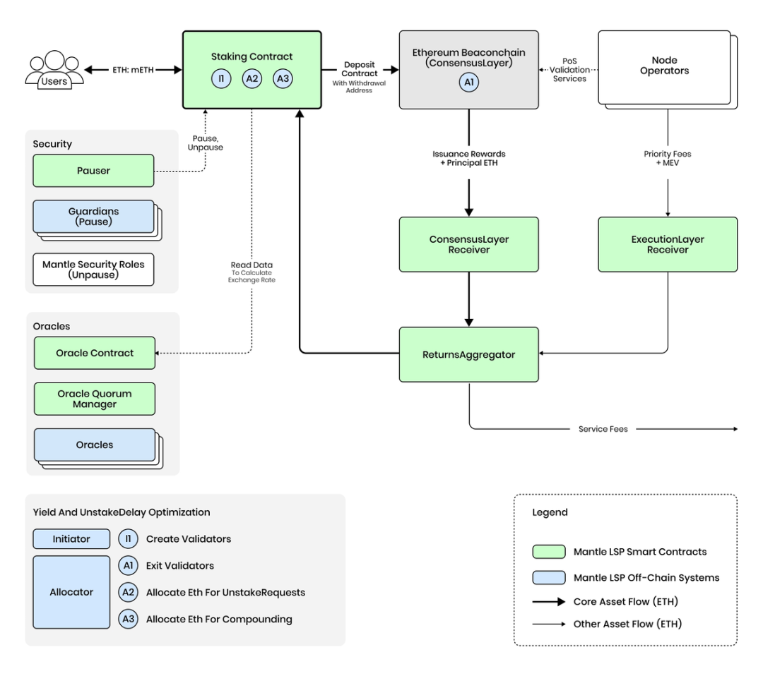 而在风险管控上,mETH 的核心智能合约和链下服务是非托管的,因此其风险趋小化。此外还采用以太坊上海升级之后的设计,重视 ETH 的完整性,L1 上的 mETH 不会增加其他 POS 代币和链的复杂性。这也为后续的各类集成,打开了方便之门。