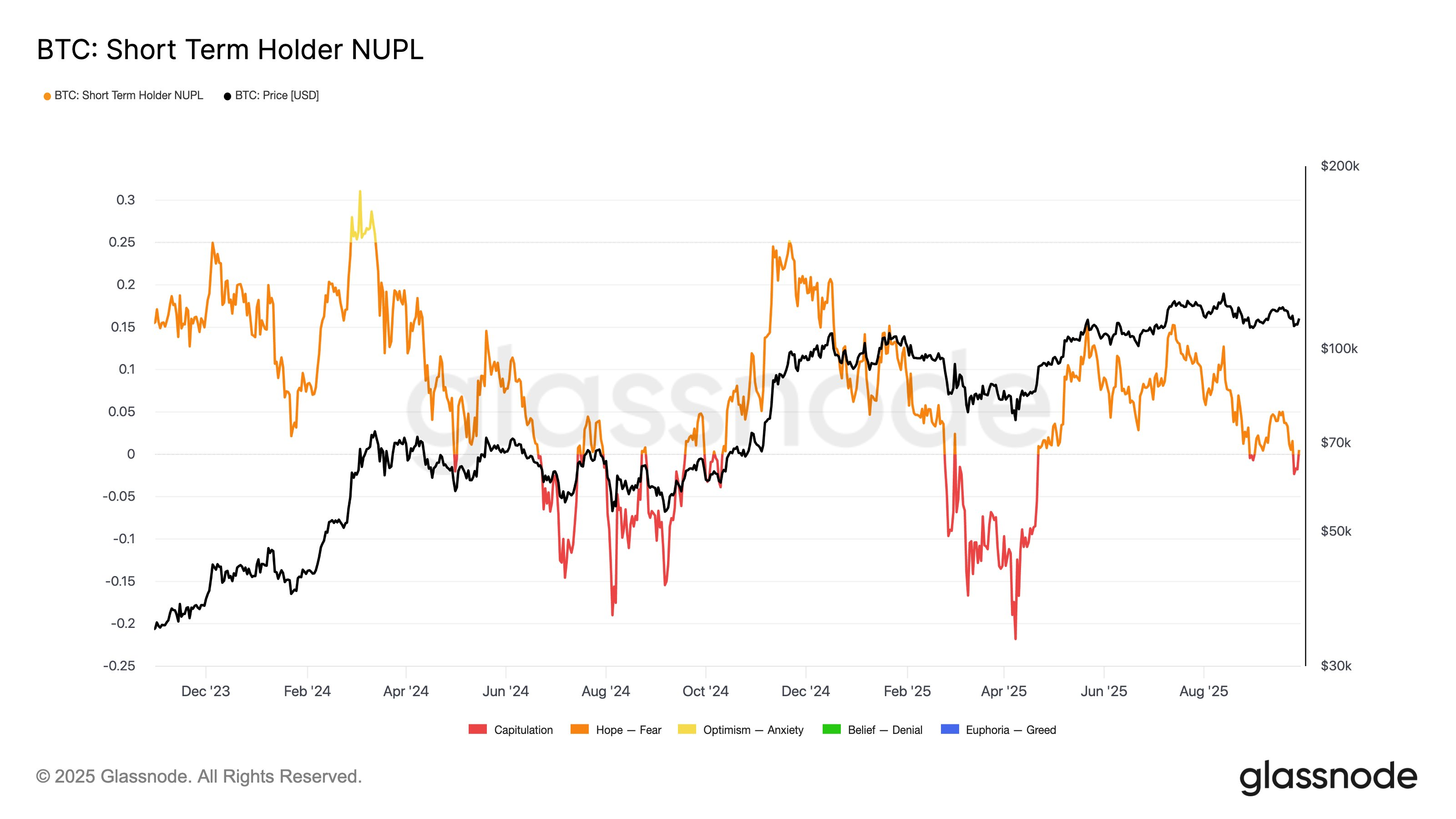 Glassnode:BTC 短期持有者正承受亏损,市场或将进入重置阶段。