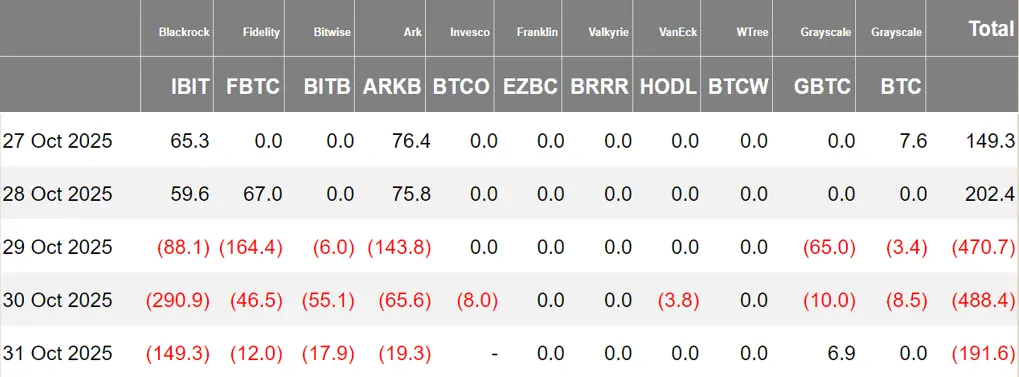 美国比特币现货 ETF 净流出 7.98 亿美元
