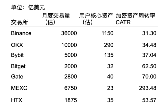 为了进行横向对比,加密交易所资产周转率(Crypto Exchange Asset Turnover Ratio, CATR)如下:
