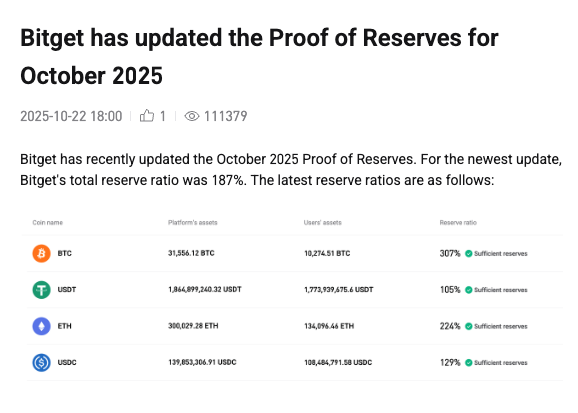BTC: 用户持有10,275 BTC,平台有31,556 BTC(fun fact:Bitget的BTC储备率高达307%,这是为了显示自有资金雄厚?!)。
