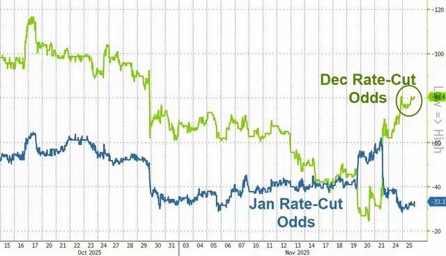 ⚡全靠一张嘴做预期管理!在鲍威尔盟友Williams反复放鸽的讲话之后,市场对12月降息预期完全被逆转了——