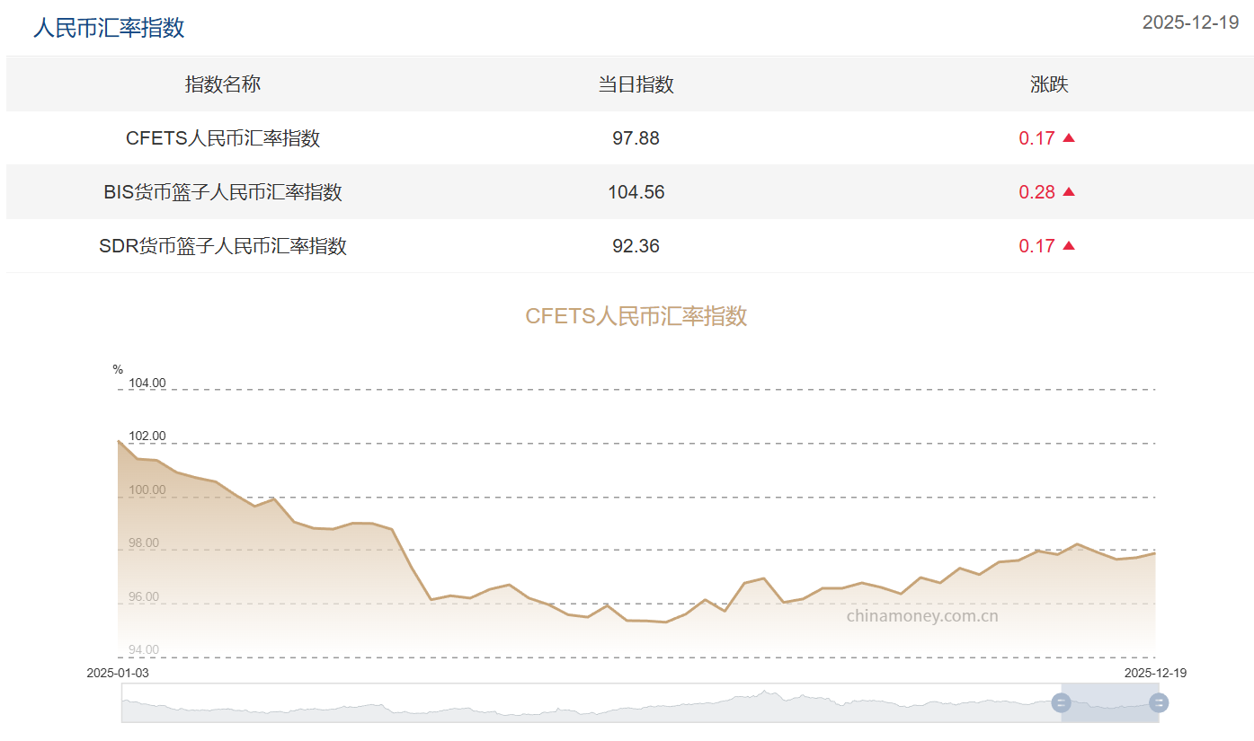 根据中国外汇交易中心的数据,从今年开年至今,人民币汇率兑CFETS人民币汇率指数、BIS货币篮子人民币汇率指数,以及SDR货币篮子人民币汇率指数都出现了下跌,其中两大指数都跌破了100。