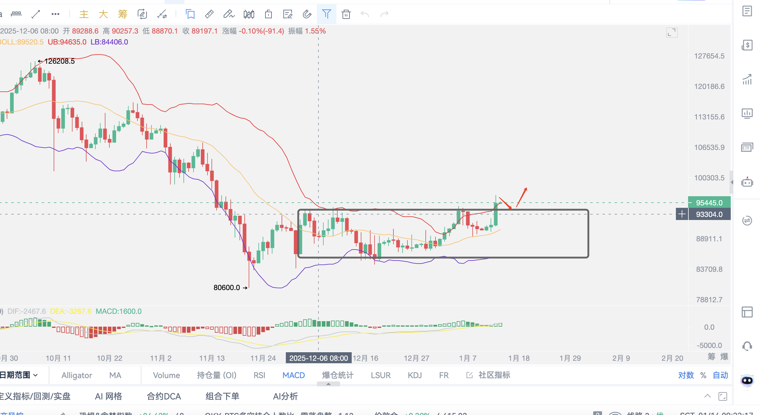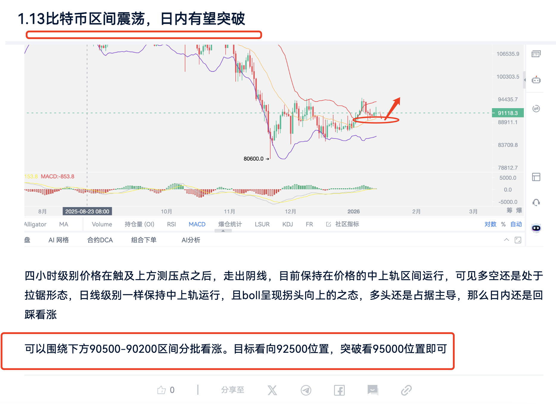 1·14比特币迎来2026年第一波上涨,日内还要走延续,看到98000附近