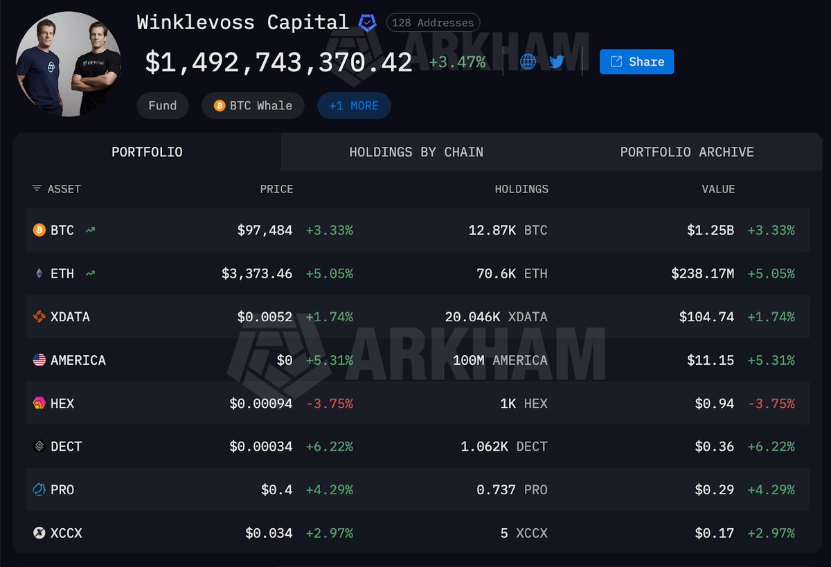 温克莱沃斯兄弟现在只持有他们最初持有量的约10%,但他们仍然拥有超过12.5亿美元的比特币。真是疯狂。