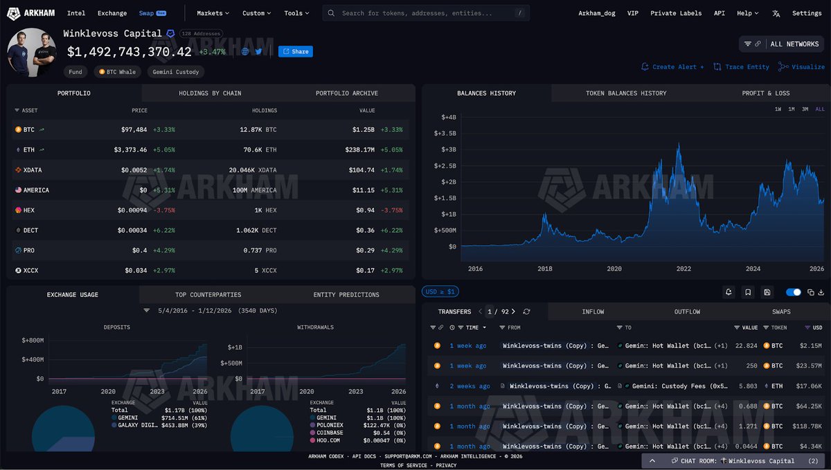 泰勒和卡梅伦·温克莱沃斯曾经持有流通中的比特币供应量的1%。虽然他们现在持有的略少,但他们仍然持有价值12.5亿美元的比特币,并且他们的历史利润达到了23亿美元。