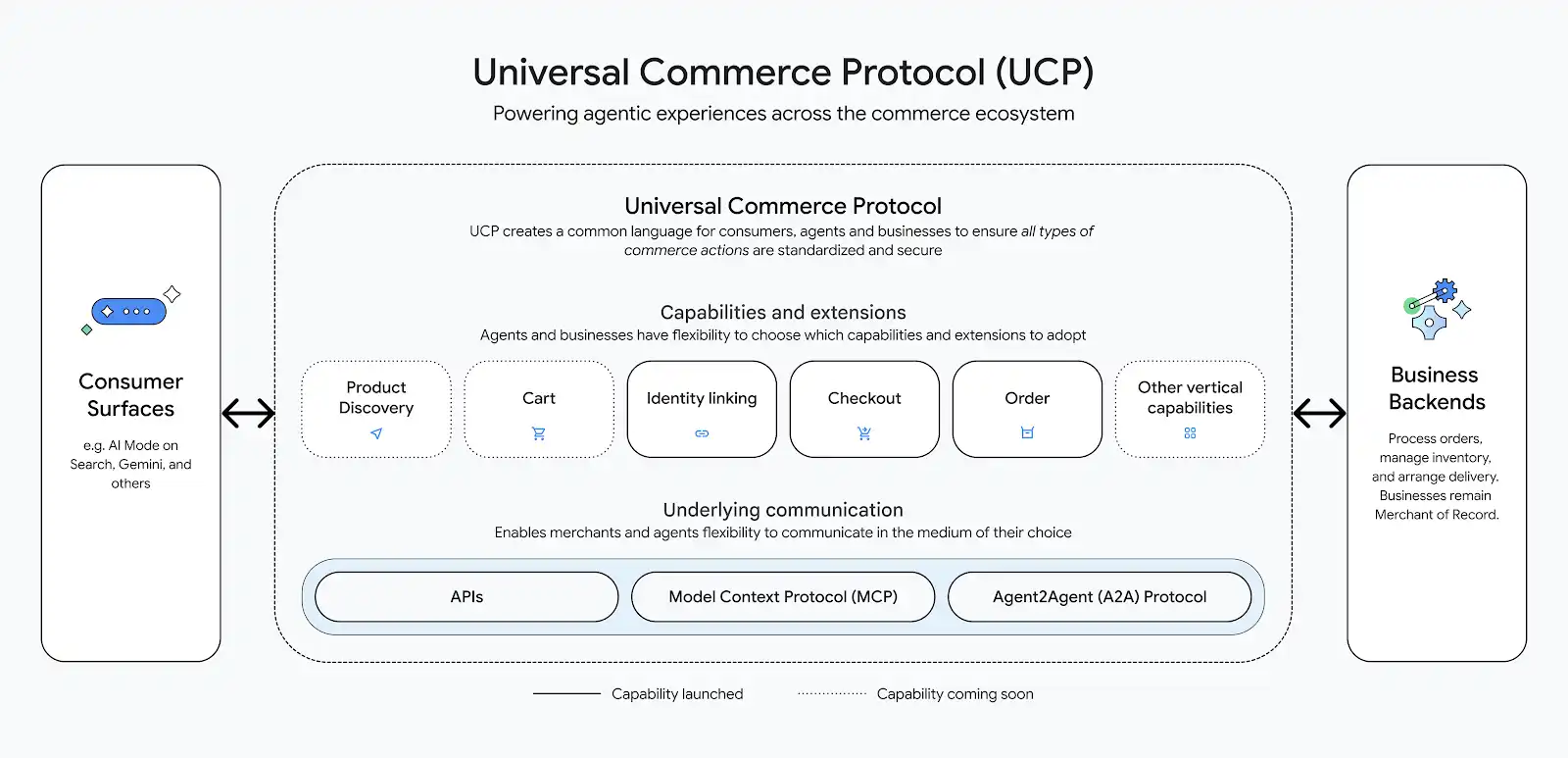 这一趋势正在得到更广泛标准层的呼应。Google 近期提出的 Universal Commerce Protocol(UCP),标志着主流科技体系开始为「代理可理解的商业接口」建立统一规范。UCP 试图在商品发现、交易意图表达与结算流程之间建立开放接口,使 AI 代理能够跨平台完成从决策到交易的完整闭环。由 UCP 负责表达商业语义,x402 承担价值结算职能,两者形成分层协作关系,将为代理与代理之间、代理与商户之间的自动化交易提供更清晰的技术路径。