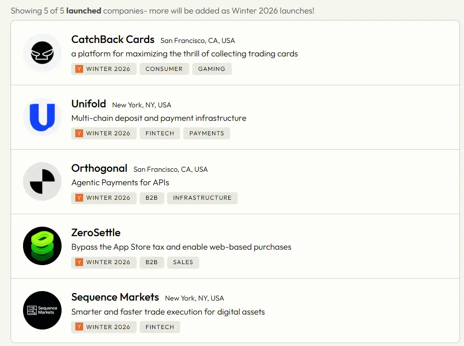 YC Winter 2026刚刚公布,149家公司里有5家和Crypto相关。这个数字不高,但如果你拉一下历史数据,会发现这5家背后藏着一个很清晰的故事。