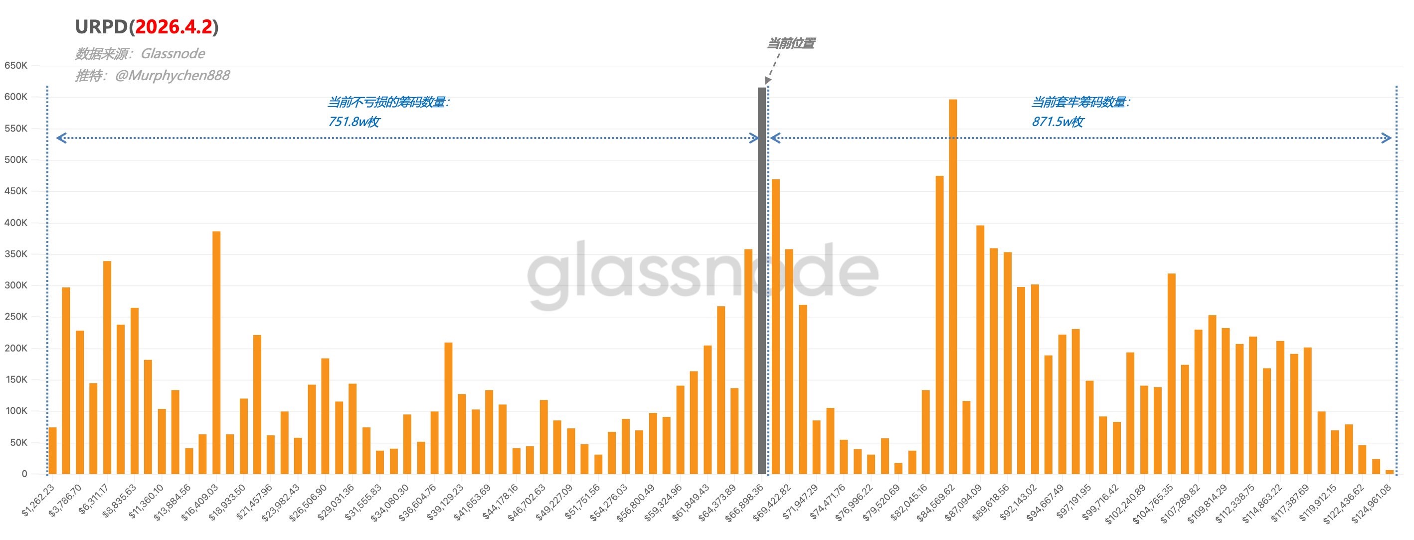 这几天 BTC 的价格始终在 $66,000-$69,000 之间徘徊,从宏观上看,这个位置正好处于筹码结构的中间平衡区。