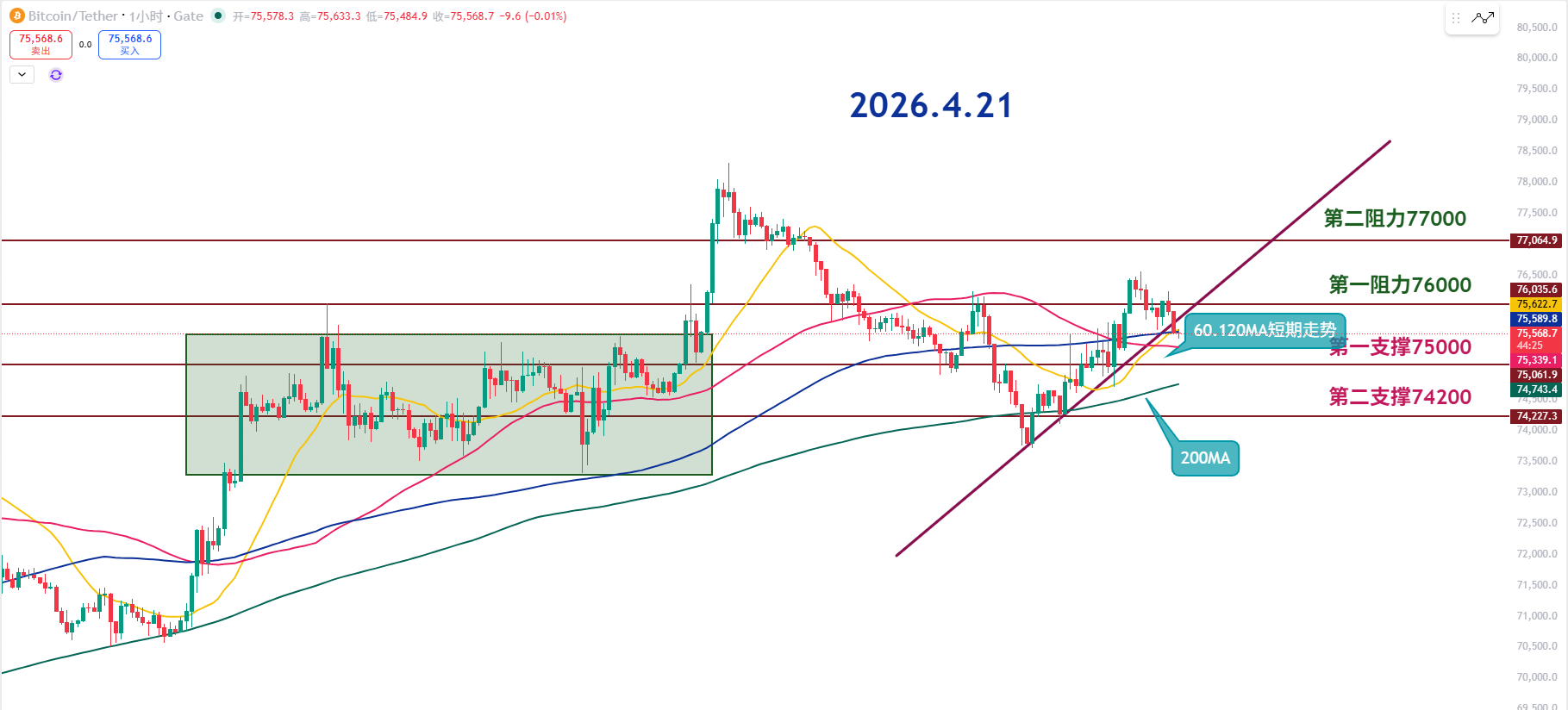 技术面上看,目前就是个关键节点。76K的这个位置守不住就别装了。但如果站稳了,可能还有一波去试80K。守不住的话,那就老老实实往下找支撑。
