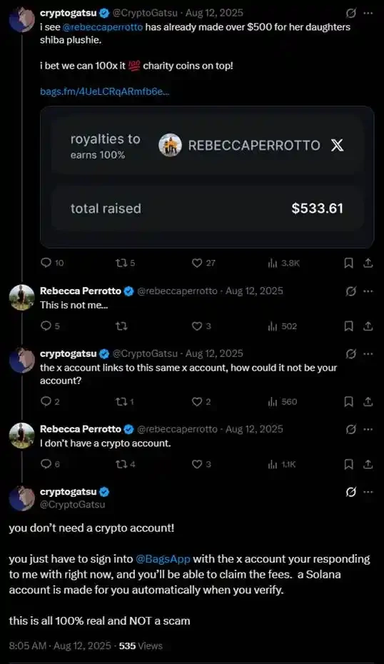而 SOL 上的 $ASTEROID 早在去年 8 月发射出来时,就引起到 Rebecca Perrotto 的注意。当时她的态度是澄清与本人的关系,并且没有对手续费做出任何进一步回应: