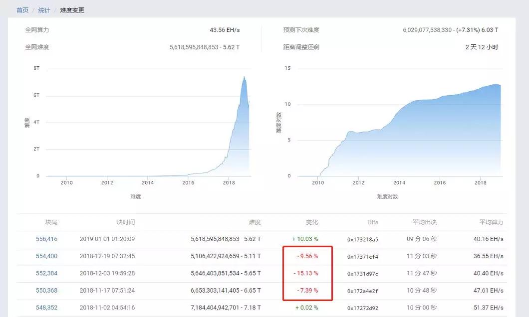 从11月中旬BTC跌破6000开始,矿工们经历了一轮大幅的洗牌,挖矿难度在这期间累计下跌了32%,是BTC挖矿史上的第二次难度大幅下跌,上一次这么大幅度的难度下跌都要追溯到2011年了,当时也是BTC的挖矿难度连续几个月下跌。挖矿难度下跌意味着算力的下降,也就是说有大量的矿工关机或者离场,大量的小矿场倒闭,甚至美国的顶级矿场Giga Watt都宣布破产保护,没有扛过去。如今算是恢复稳定,BTC的挖矿产业恢复了动态平衡,挖矿难度再次恢复到缓慢上涨的阶段,在上次难度增加10%之后,在2天后还将再增加7%,如今BTC的挖矿成本也维持在2W多,随着难度慢慢的上涨,挖矿成本也会慢慢的涨上去。