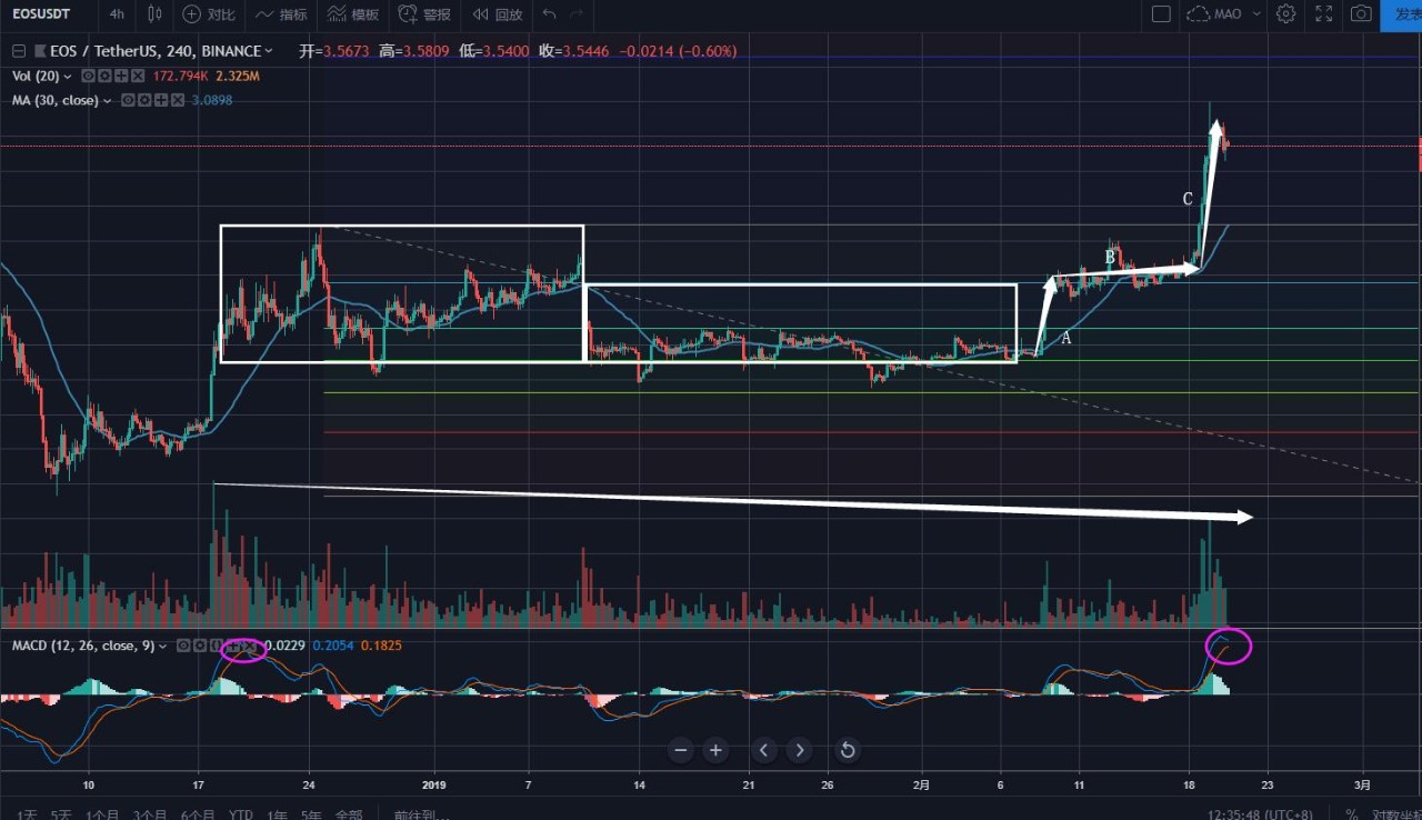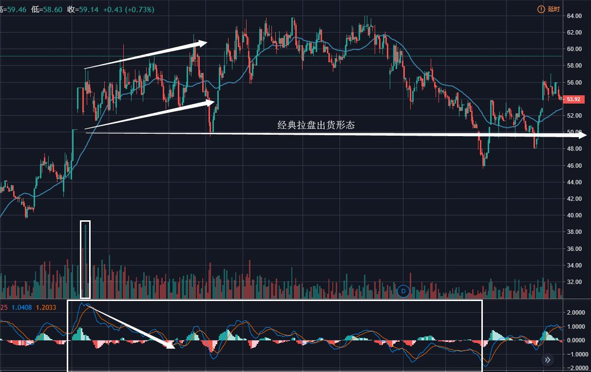 出货特征放量拉升,MACD指标直线冲高,随后MACD指标开始下行,股价却一直向上,就是我们常说的背离。典型的边拉边出的方法。实现原理:大单抛给散户接,高价挂小单自己接,小损失换来大仓位出逃。这和我们昨天说到的拉XRP造成换龙头假象异曲同工,换龙头以后大家警惕性就会降低,原本准备撤的单就不动了,庄家就可以玩出各种套路出货了。这个其实在股市进场出现,就是拉蓝筹股涨指数,而散户手里的股票却跌个不停。